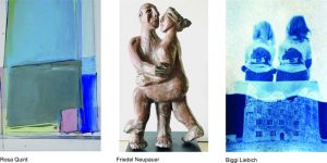 Herangehensweise, Ausdrucksform und das gestalterische Ergebnis der Künstlerinnen sind sehr verschieden. Friedel Neupauer nähert sich den Episoden der Vergangenheit mit Plastiken, dabei setzt sie Szenen aus der Erinnerung um. Biggi Liebich untersucht mit Collage und Cyanotypie Familienzusammenhänge und entwirft neue Konstellationen. Für Rosa Quint verbinden sich Episoden der Vergangenheit mit Räumen, Wegen und Situationen, die sie in Zeichnung und Malerei in eine abstrakte Formensprache überführt.
